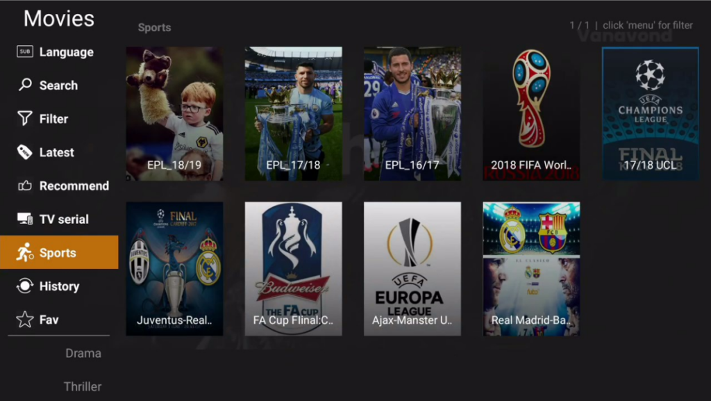 Because GTV IPTV owns global content, it must provide diversified streaming media. It covers almost all genres, such as comedy, horror, science fiction, drama, thriller, romance, etc. The best of them is sports.